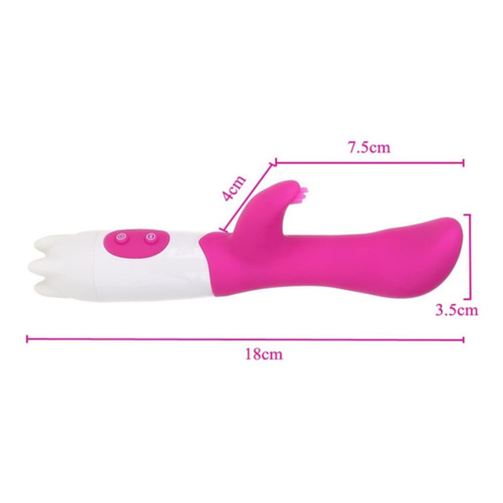 Su diseño anatómico es ideal para estimular el clítoris y alcanzar el punto "G" femenino. Es fácil de usar y silencioso, funcionando con solo 2 pilas "AAA". Sus dimensiones son de 17,5x3cm, lo que lo hace compacto y fácil de manejar.