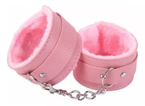 Esposas de ecocuero rosa regulables con cadena.